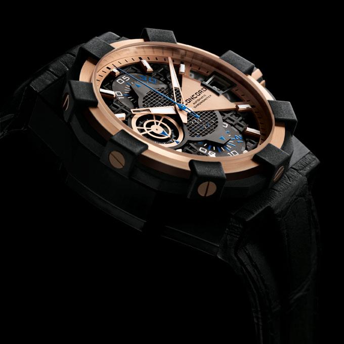 Dal punto di vista del movimento, apprezziamo ancora una volta la forza del Gruppo Swatch per offrire movimenti di base di efficienza formidabile e con una riserva di carica di oltre 80 ore, o tre o tre giorni e mezzo. Questo ETA automatico è contenuto in una robusta custodia in titanio, che rende Captain Cook particolarmente leggero e confortevole. Il calibro non è visibile in basso, perché, come molti subacquei, Rado ha favorito una migliore tenuta qui resa possibile con un solido fondo in titanio, inciso con tre cavallucci marini.